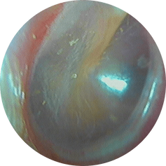 • En cas de bombement, le reflet lumineux rend le tympan opaque